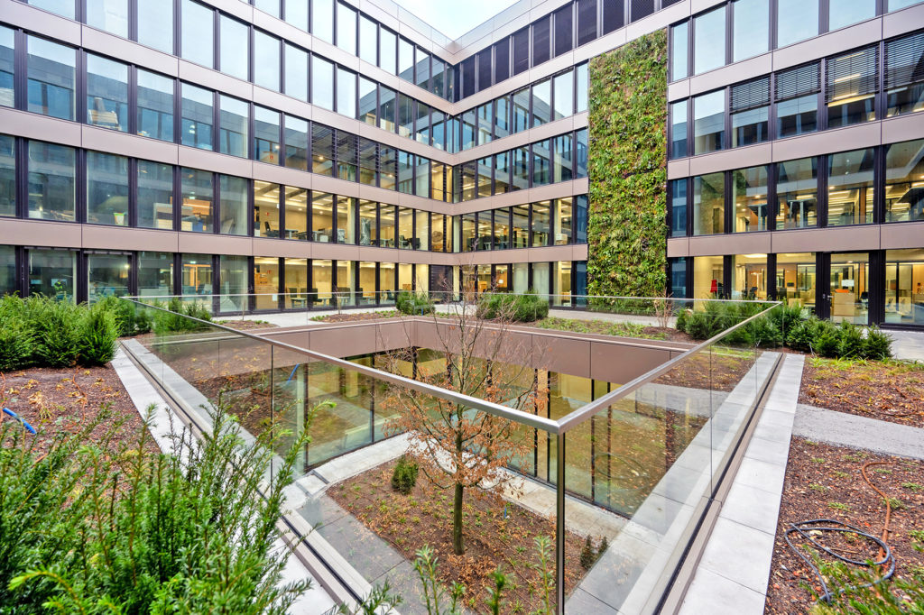 One side of the new building will be the so-called Garden Level. A spacious, open office landscape will be created here. Outside, directly in front of the entrance, a green area will be created. Plants will grow in numerous stairs at different heights and create a feel-good ambience. Tables, chairs and umbrellas form the basis for working, collaborating or simply relaxing in the outdoor area. We are currently working closely with a gardening and landscaping company to plan and later implement the optimal planting. In addition, railings and granite for the stairs are still missing.
