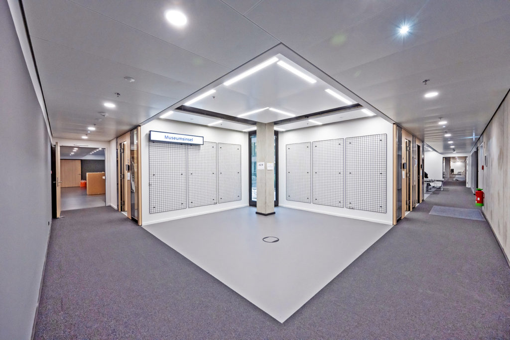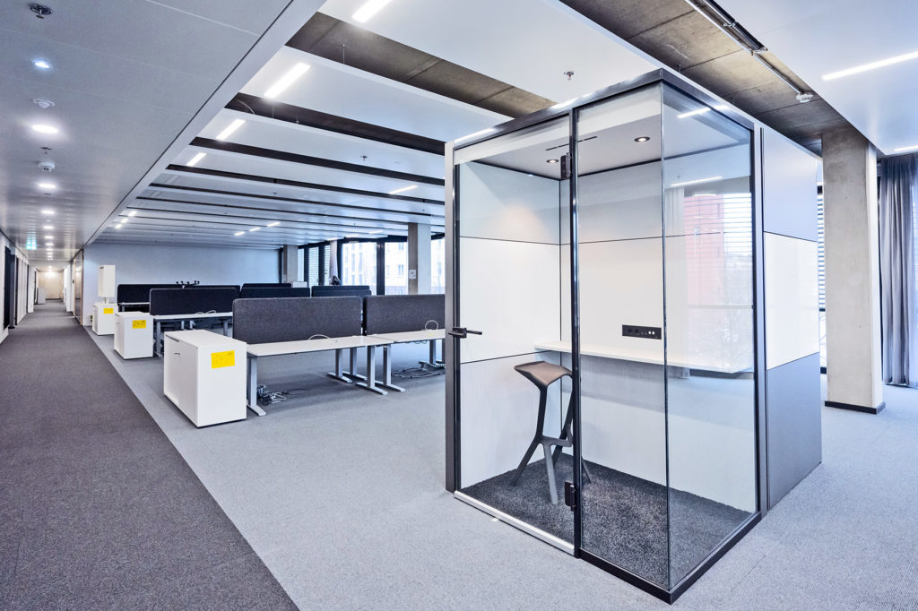 The light-flooded and open office landscape reflects an open corporate culture. Telephone boxes with sound insulation provide a private atmosphere for online meetings and telephone calls. Further meeting rooms in different sizes are the optimal place for creative and concentration work.