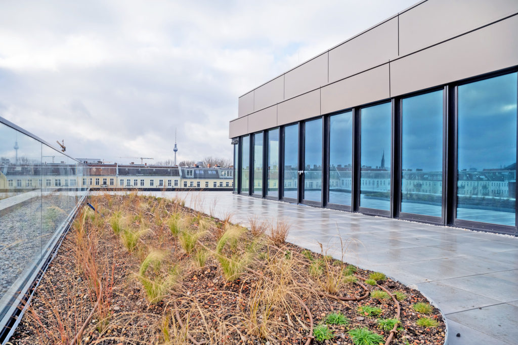 On STRATO’s roof terrace on the 5th floor, things turn green in spring. Here, a magnificent view of the TV tower and sunsets invites to enjoy.