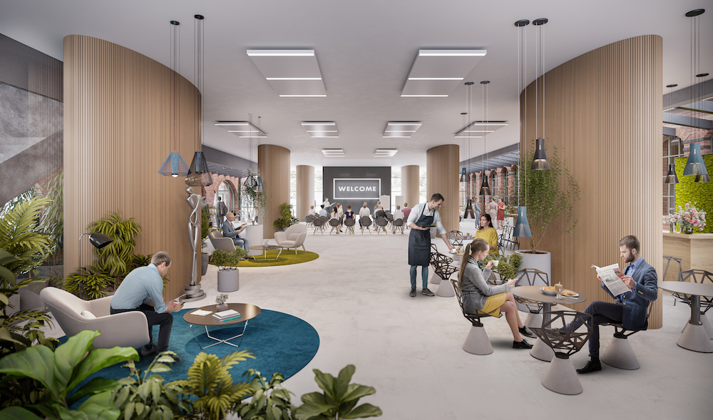 We were then allowed to start construction in 2019 – but not without having discussed our concept with the neighbourhood. In May, we therefore invited the residents to a “Neighbours’ Day” on the building site. In particular, the idea of turning one of the historic halls into a market hall, which would also benefit the surrounding area of the DSTRCT, met with a positive response. By the way, our future office tenants, who we could also announce in 2019: Strato and 1&1 Ionos will move into the DSTRCT at the beginning of 2022 with around 550 employees! The exciting symbiosis of futuristic new building and historic old building has struck a nerve and was also praised in the above-mentioned award.