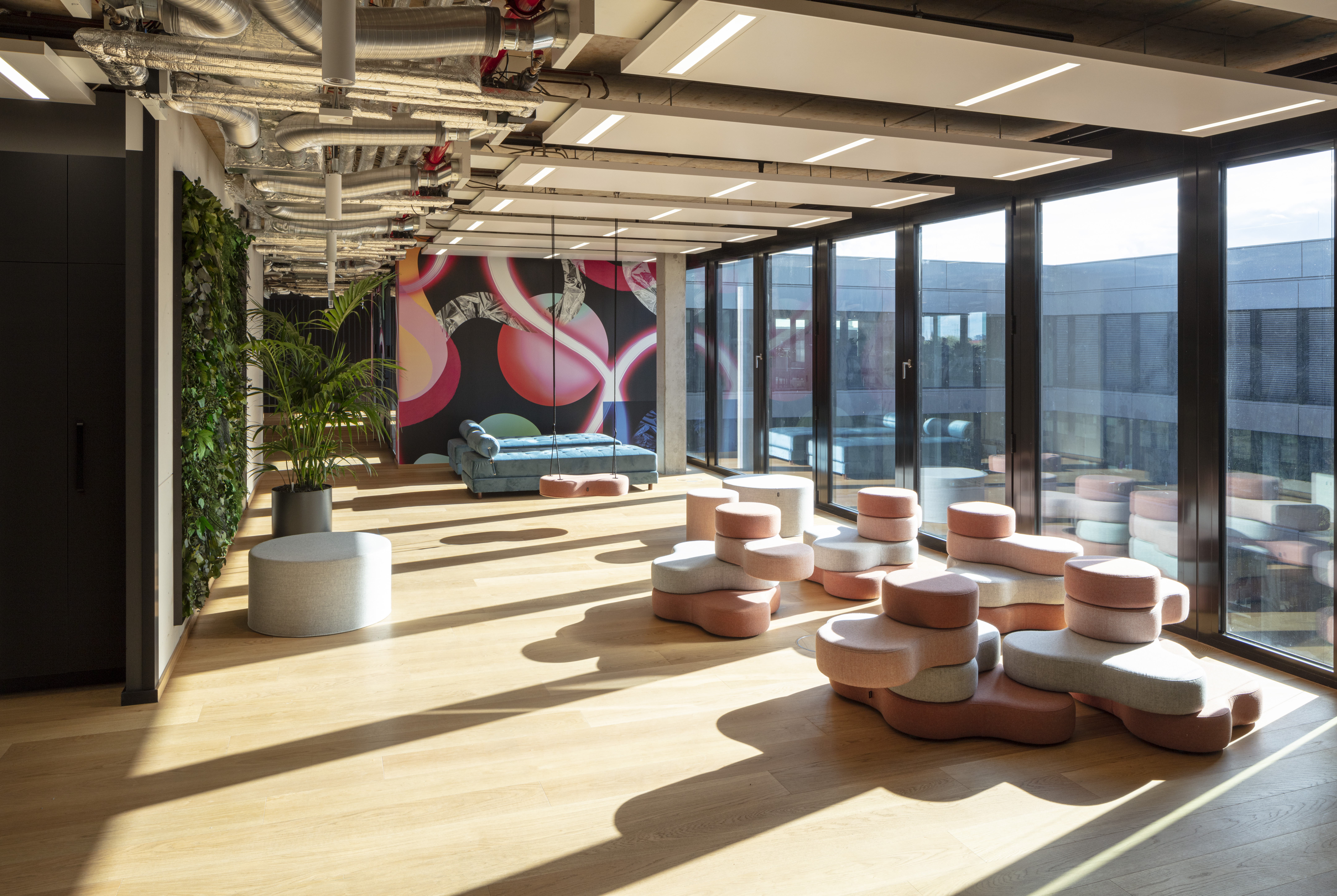 Light-flooded glass architecture allows natural light to reach the entire office. This inhibits fatigue and headache, optimises productivity and supports wellbeing.